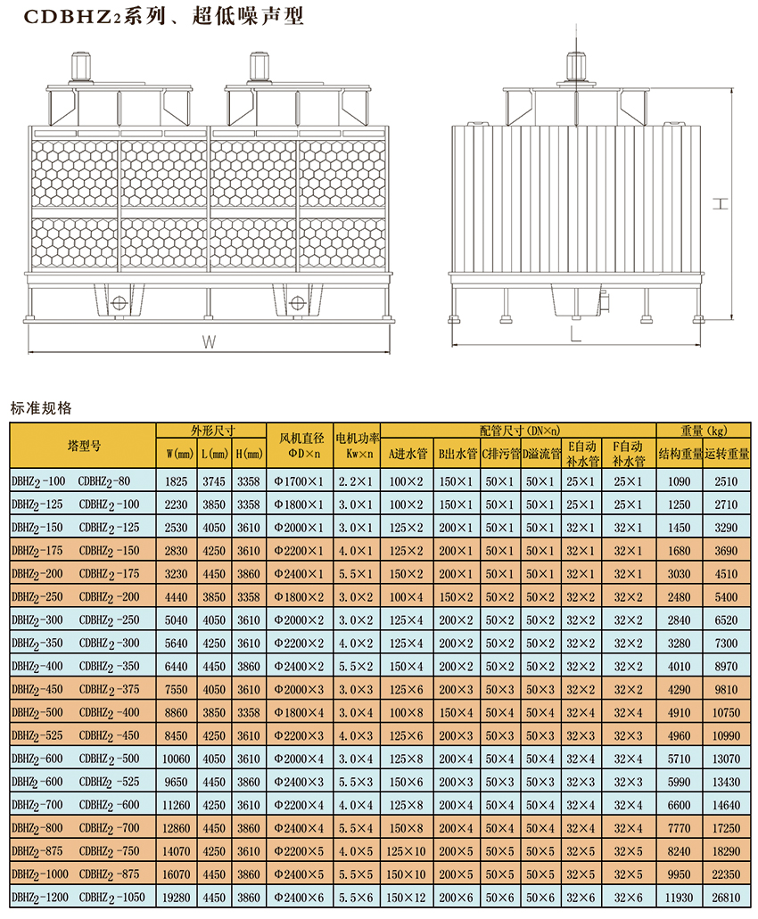 “中小型玻璃纖維增強塑料冷卻塔”規定的熱力性能及噪聲數值進行設計的新型橫流式玻璃鋼冷卻塔。